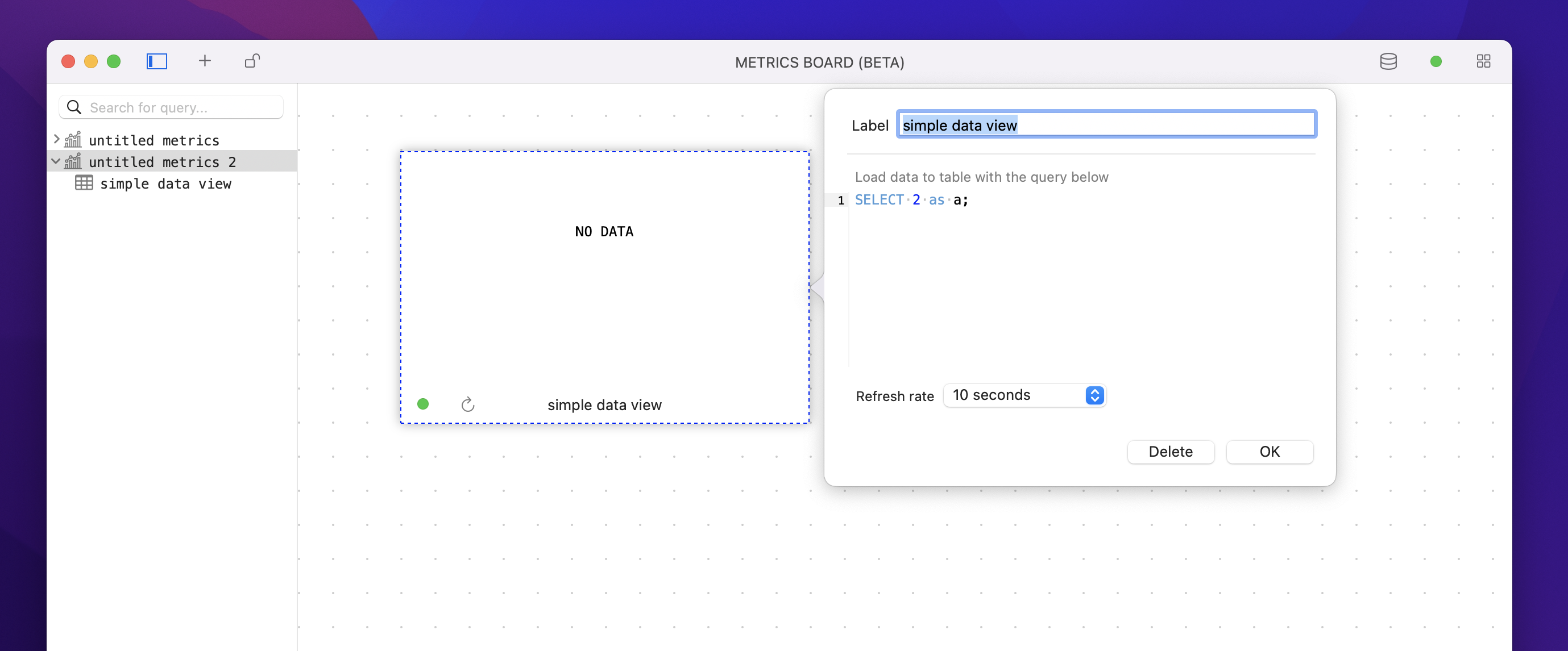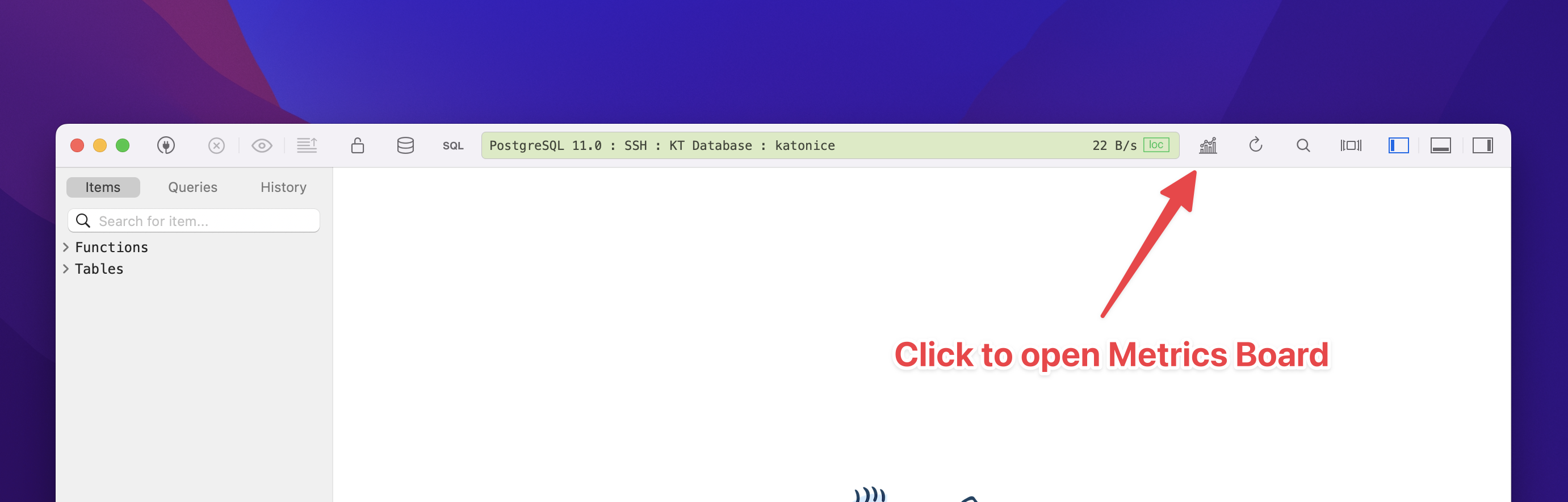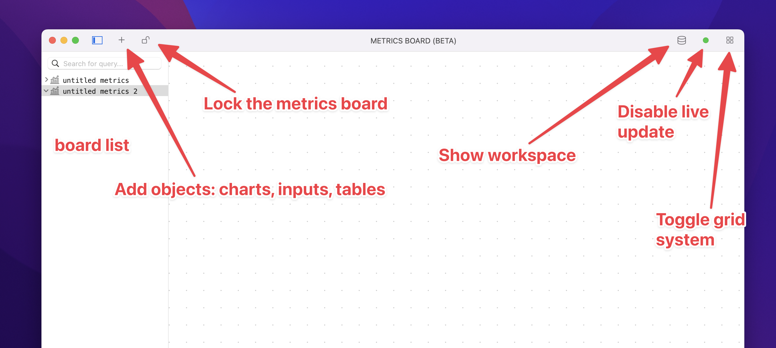 Click the Metrics Board button on the toolbar to open the Metrics Board.\ <br>